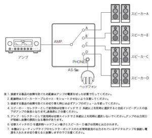L’AS-5(III) permet de sélectionner jusqu’à quatre systèmes d’enceintes à partir d’un seul amplificateur, ou de basculer entre quatre amplificateurs pour écouter un seul ensemble d’enceintes.